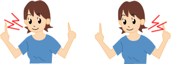 首を左右に振り向いたときの振り向きやすさの違いをチェックします。 どちらかが分かりにくい場合は、両手の人差し指を伸ばして顔の横に置き、どちらの人差し指が見やすいかを意識すると分かりやすくなります。